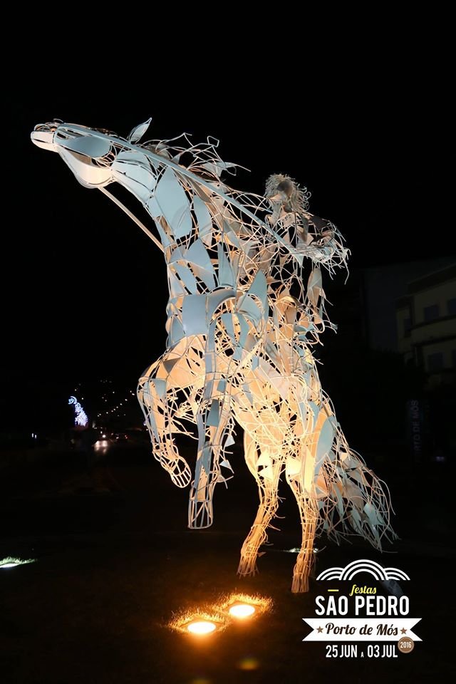 A escultura “Dom Fuas Roupinho” é uma impressionante obra em ferro situada em Porto de Mós. Criada pelos artistas Paulo Honorato e João Neto, esta peça equestre homenageia uma das figuras mais icónicas da história local. Com 5,80 metros de altura, a obra destaca-se pela sua imponência e pelo caráter translúcido e incorpóreo, que confere um toque místico à representação.
